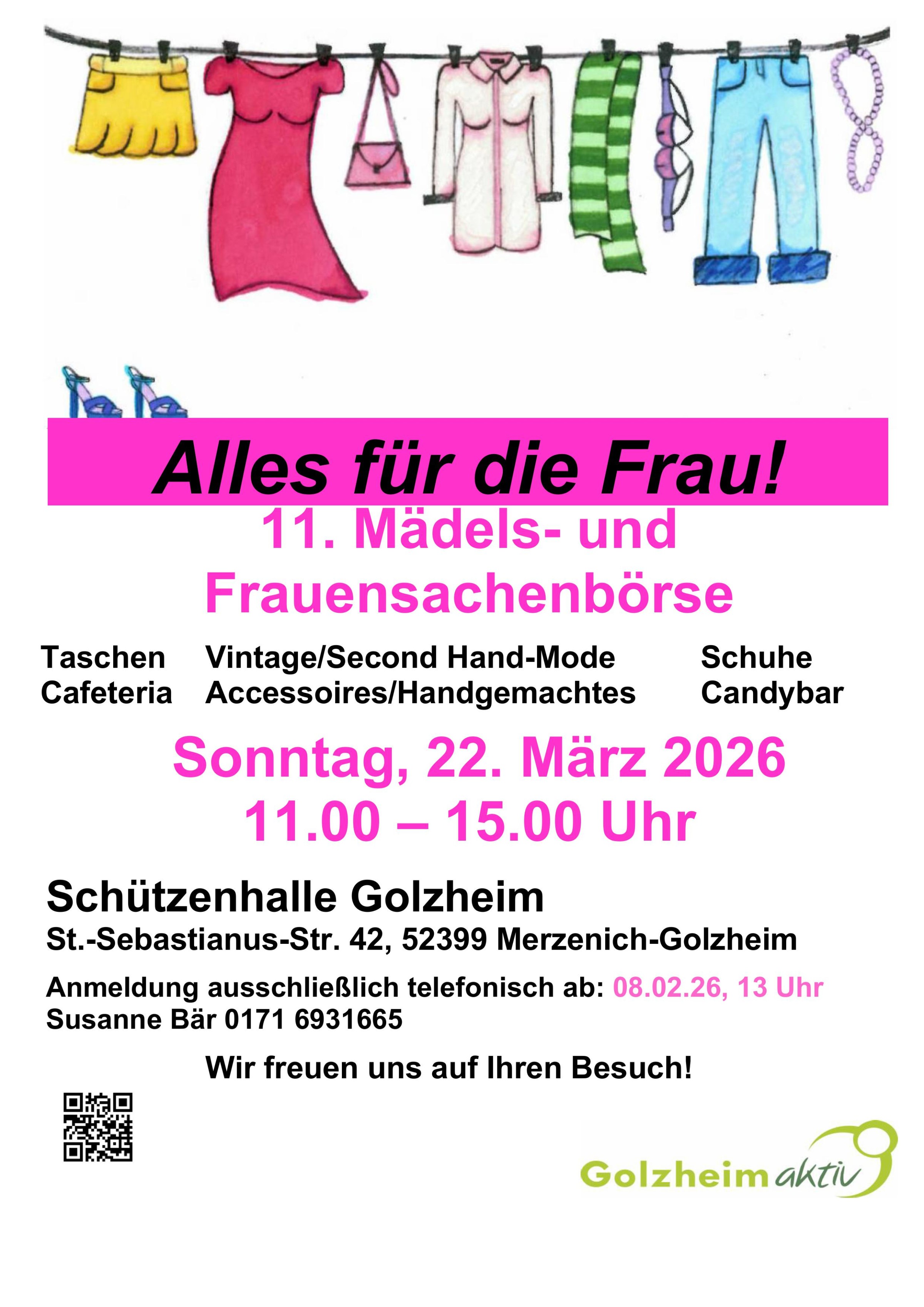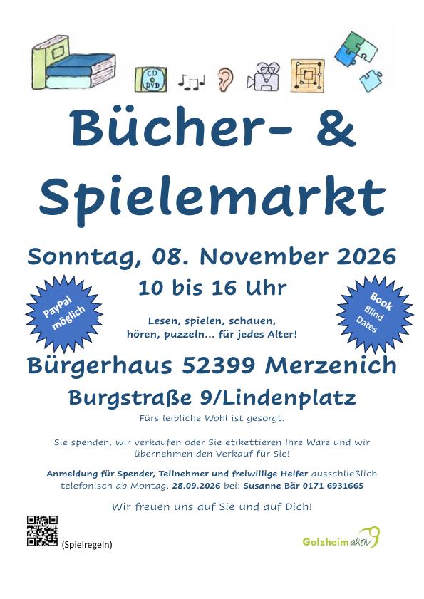 Kindersachenbörse, Frauensachebörse im März, Büchermarkt im November.